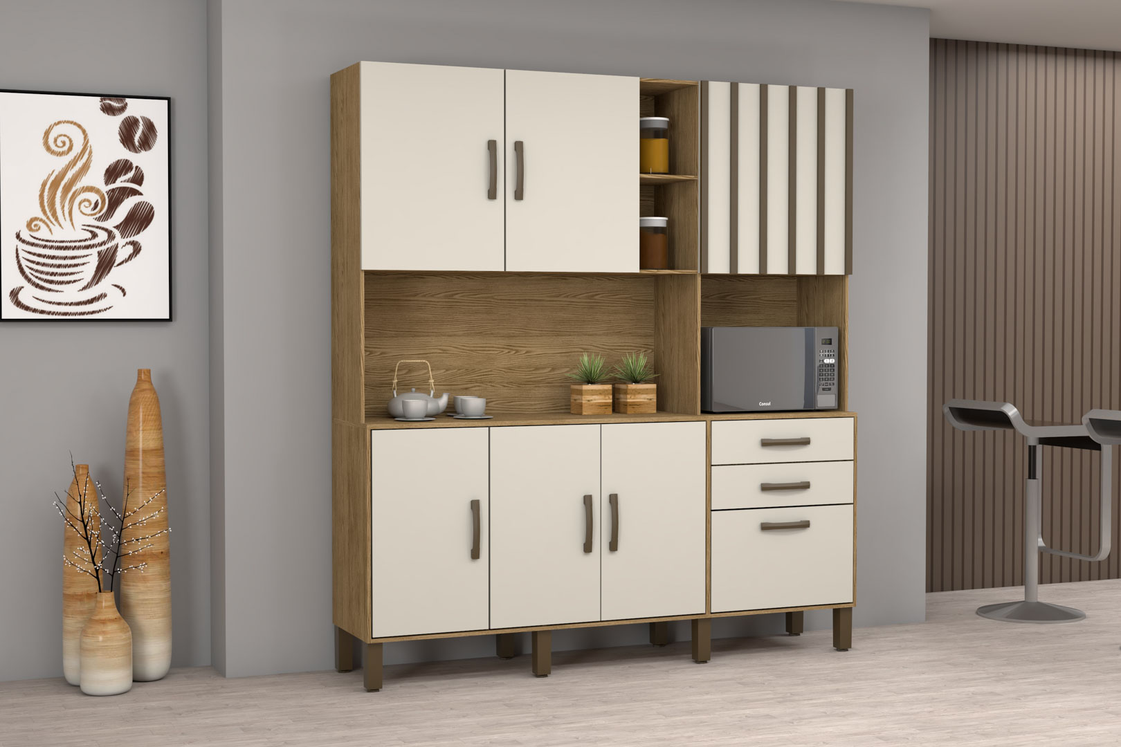 O Kit Cozinha Treviso Plus traz modernidade e funcionalidade para sua casa. Com design sofisticado e acabamento nas cores Cinamomo/Off, ele oferece praticidade no dia a dia, espaço bem distribuído e ótimo aproveitamento interno, deixando sua cozinha mais organizada, elegante e aconchegante.